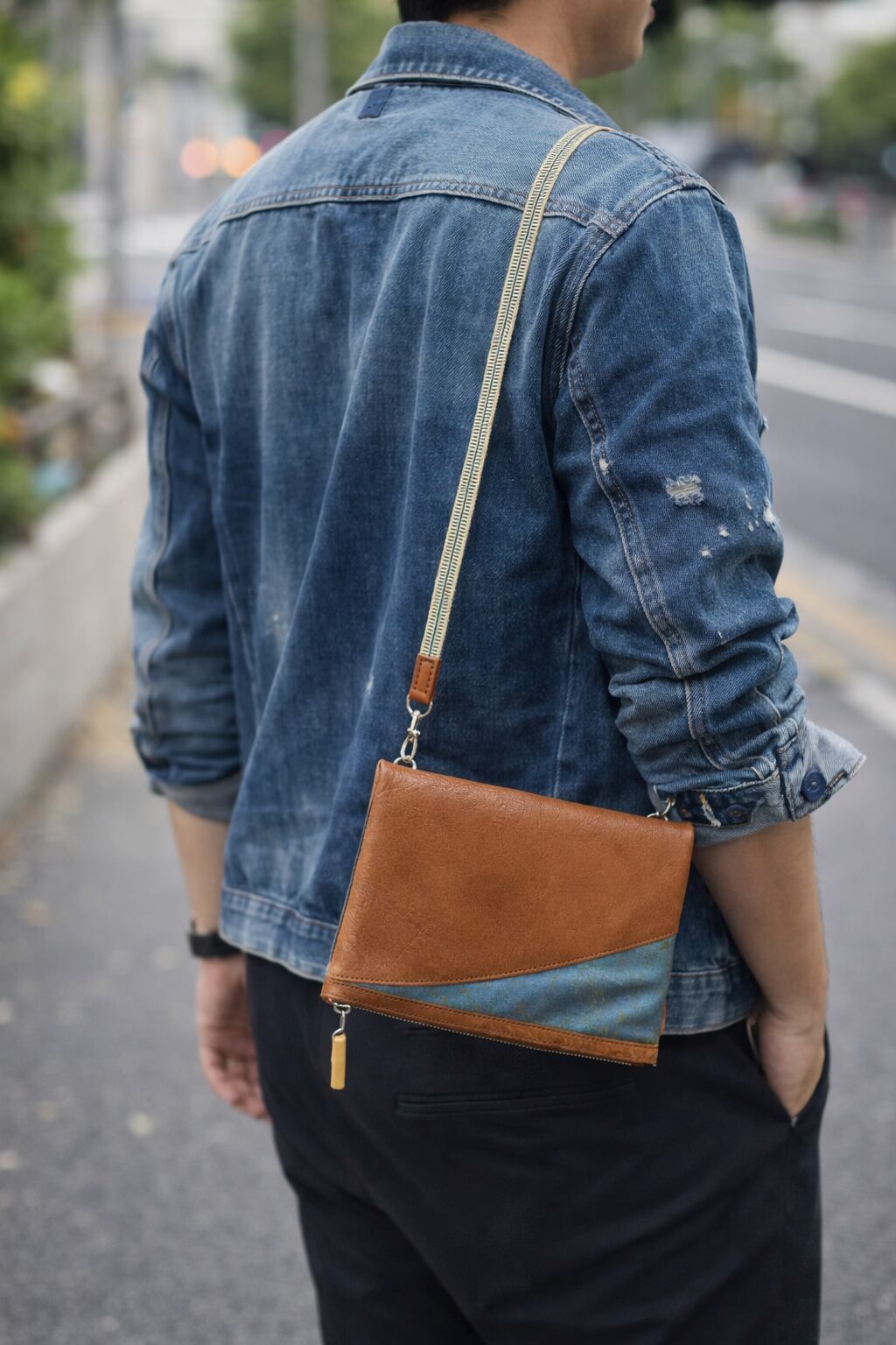 当店オリジナルの本革製道中財布をショルダータイプに仕上げました。