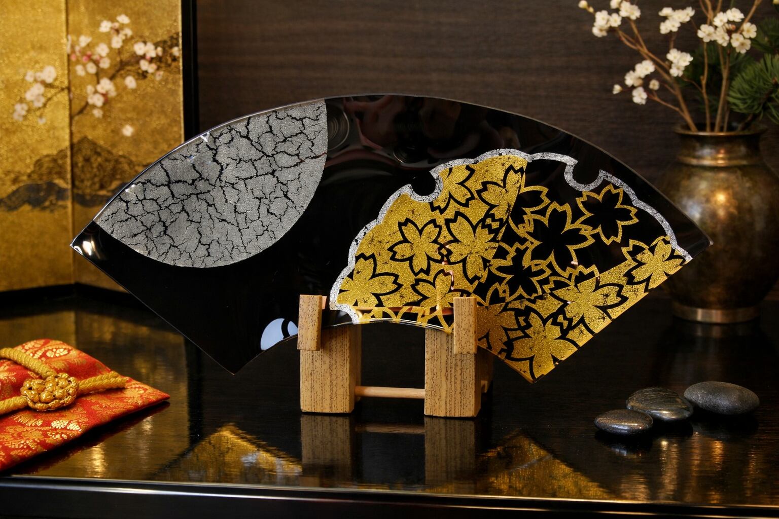 オーダー 京都 ガラス製飾り皿 金彩ガラス皿 「雪月花」 扇形