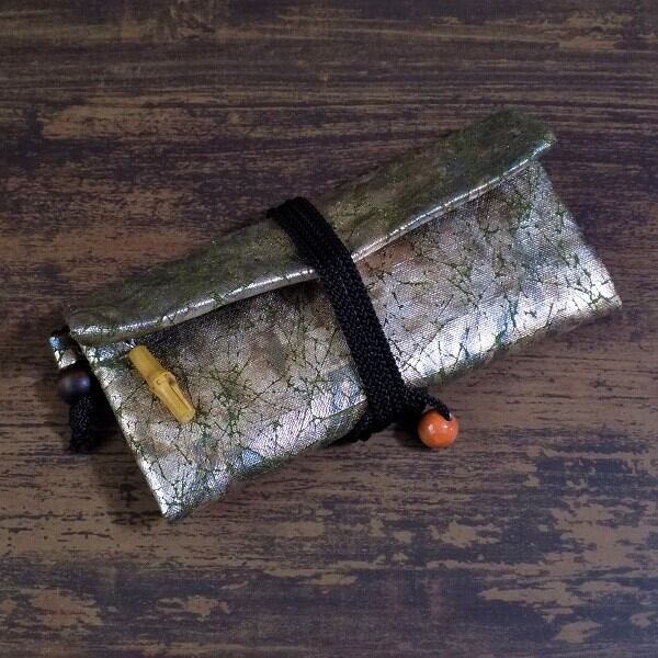 モザイク文様を金彩加工しました道中財布です。