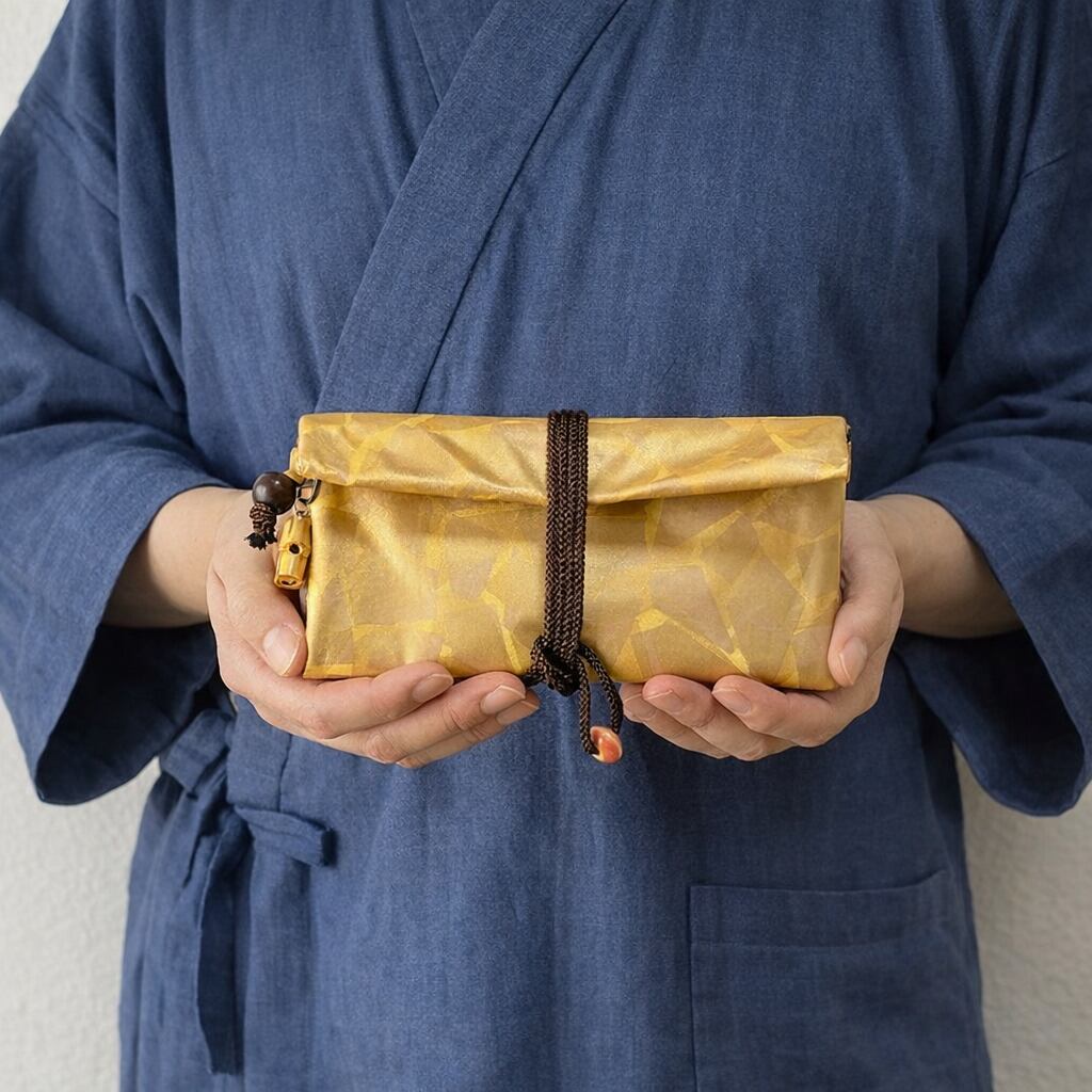 紐で巻いたり、解いたりしないといけませんが、その所作が和の嗜みを感じさせます。