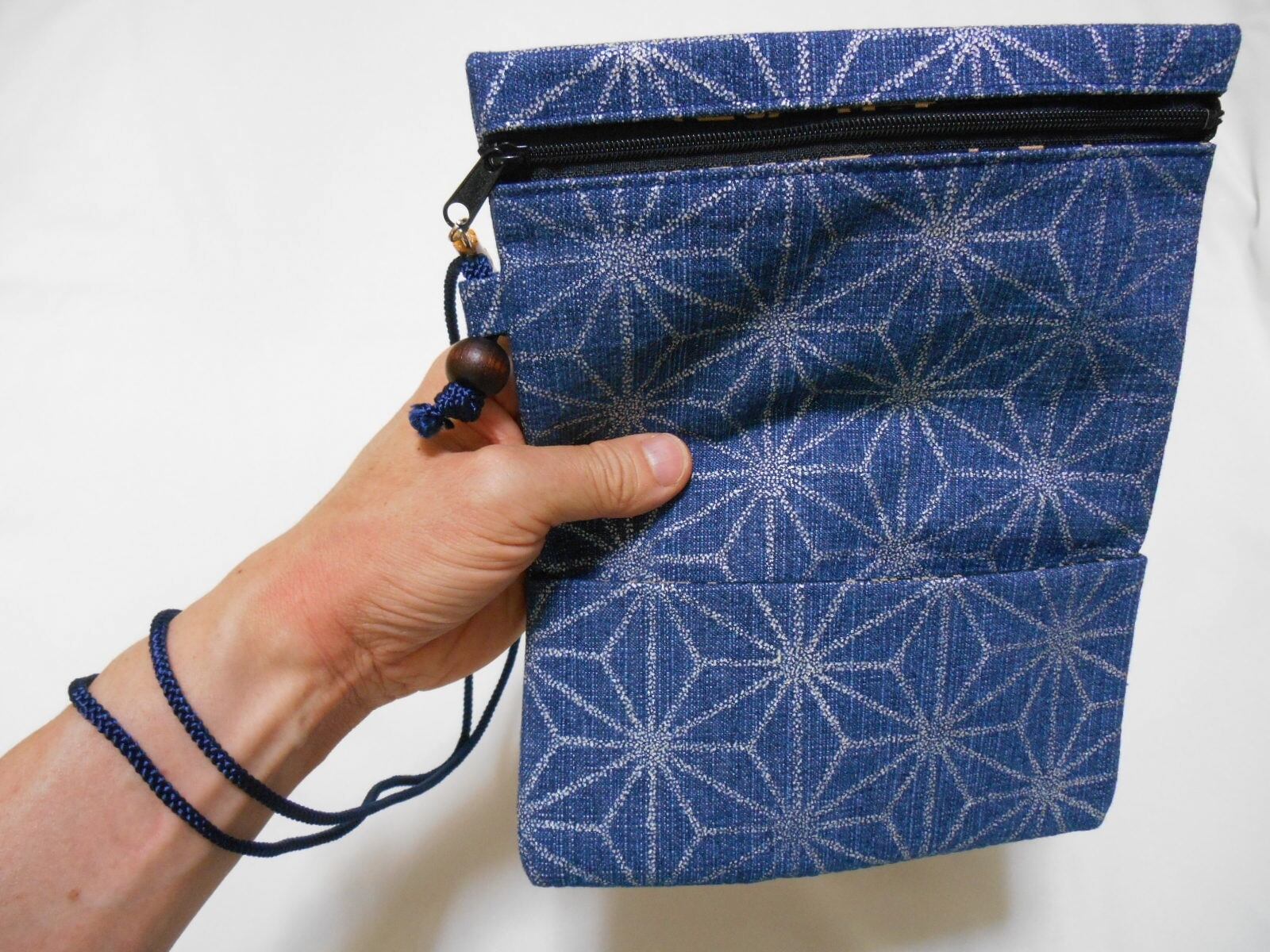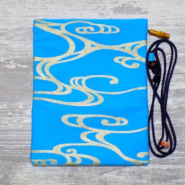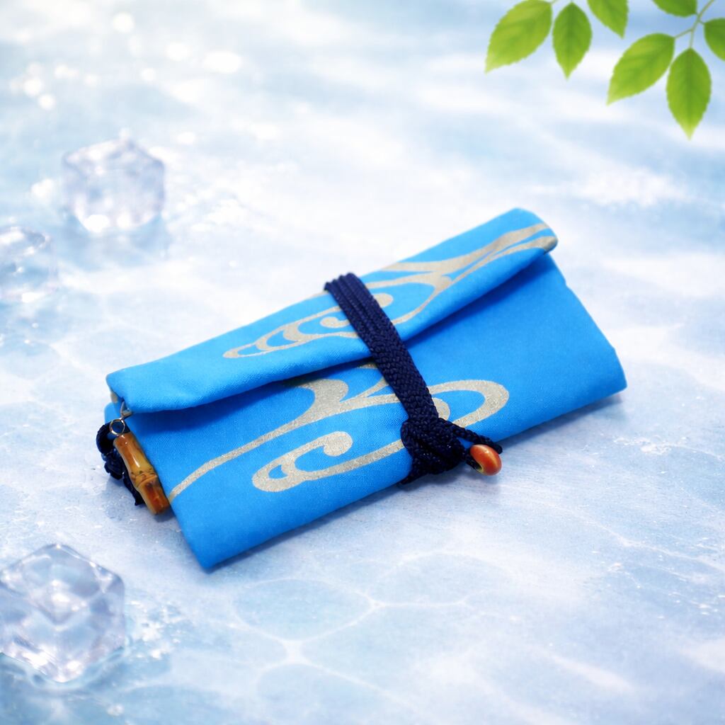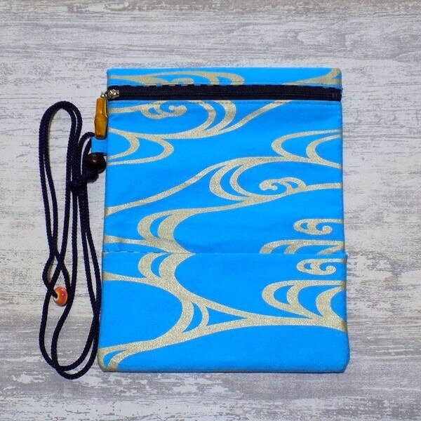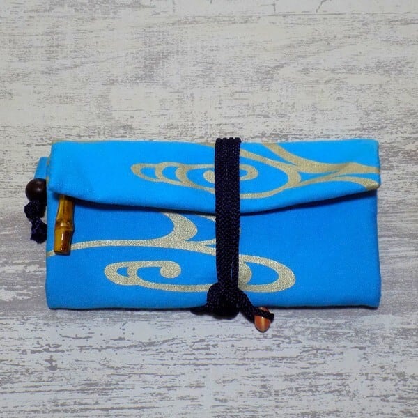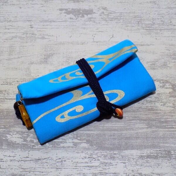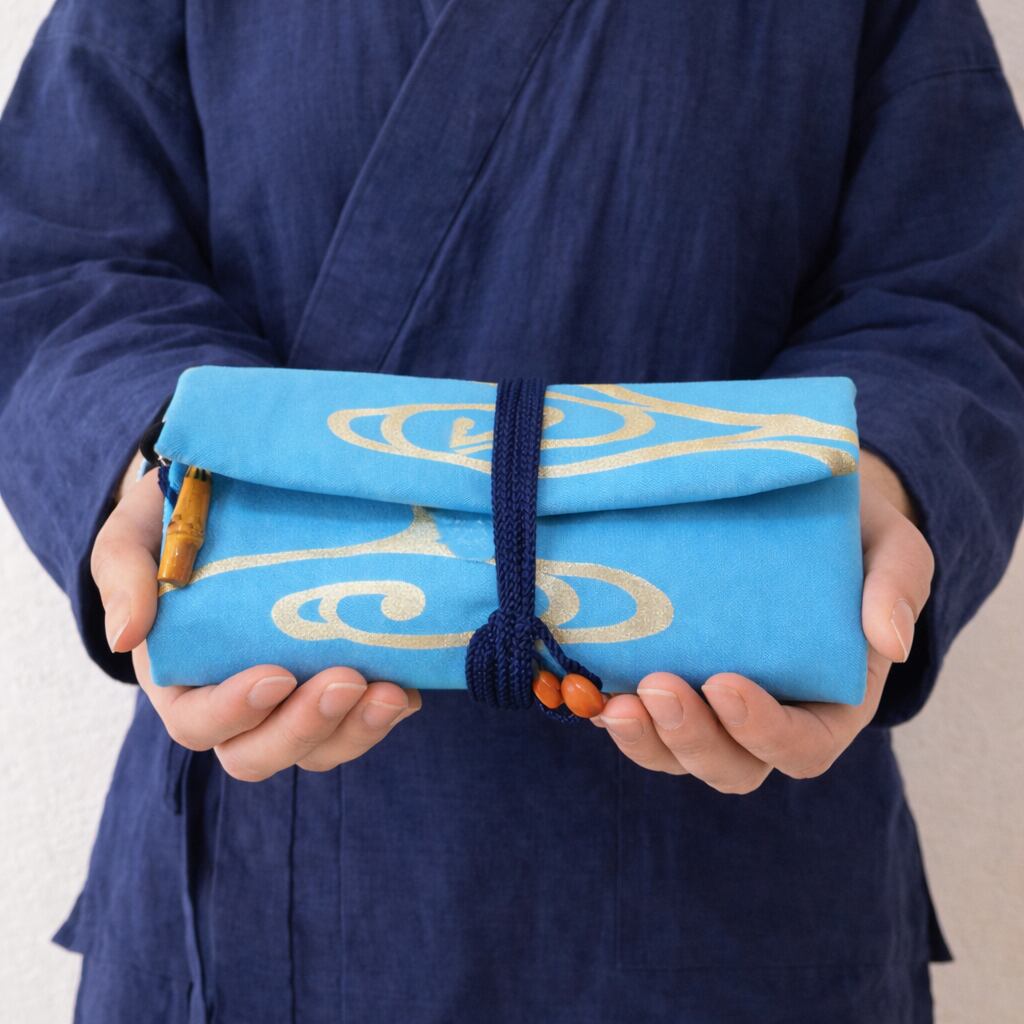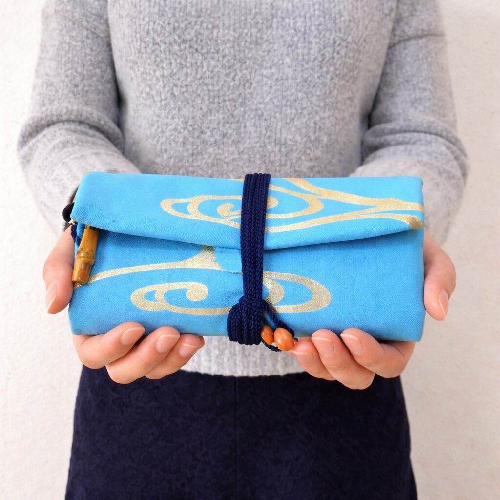 京都 コットンオックス水色地製 道中財布 ロールバッグ 「流水 中色」