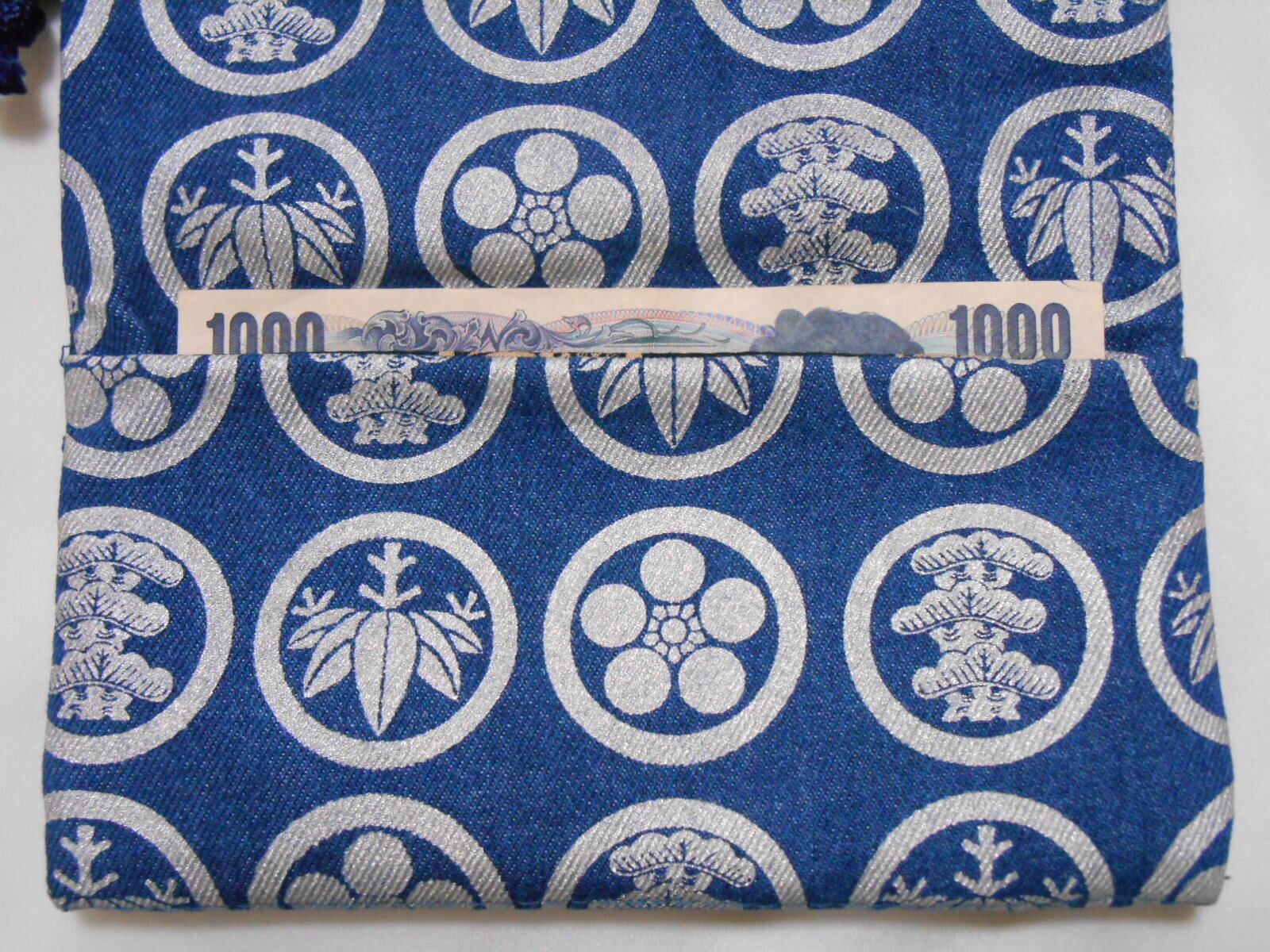 道中財布 デニム製 銀色 家紋松竹梅