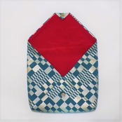 その技術を生かし、現在の日常で長く使っていただけるように素材は綿製洗い加工キャンバス生地ターコイズ色を選び、オリジナルの市松紋様の型を使い銀泥の濃淡で金彩加工しましたクラッチバッグ・数寄屋袋になります。