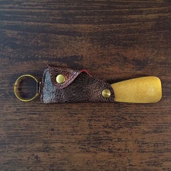 その技術を生かし、革小物職人とコラボしました携帯用の靴べら(シューホーン)になります。