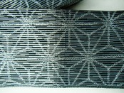 グレーの濃淡で段ぼかし風に織られた西陣織地に定番の麻の葉柄を銀で摺箔加工した角帯です。