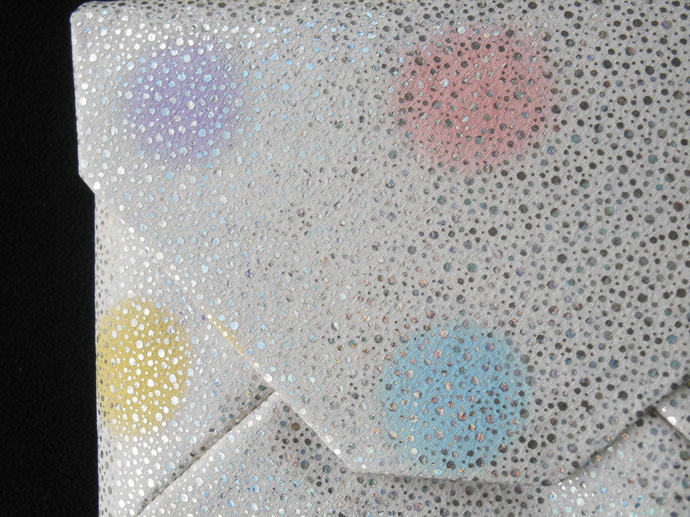 数寄屋袋 クラッチバッグ シルク(正絹)白地 水玉(うす色)ドット ホログラム箔 京友禅