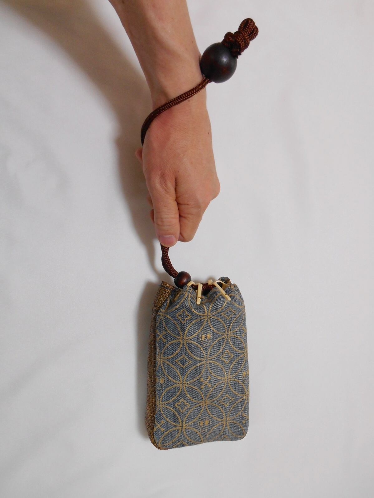 京都 帆布グリーン製 スマホケース 煙草入れ 提げもの 丸 四角 ○□