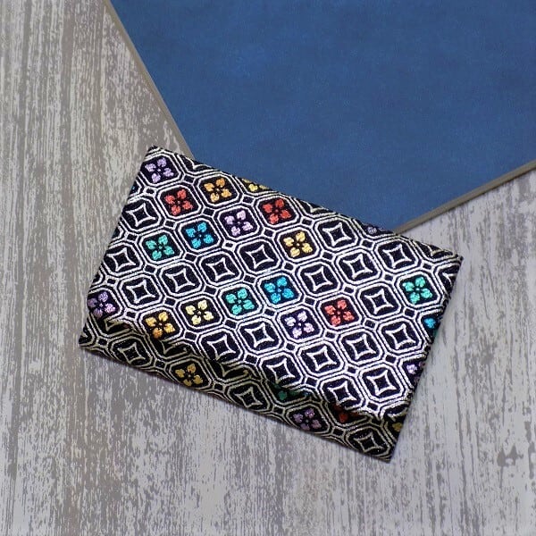 その技術を生かし、現在の日常で長く使っていただけるように素材は銀糸織銀ラメデニムを選び、レインボーカラー(7色)の金箔紛で金彩加工しました名刺入れ・カードケースになります。