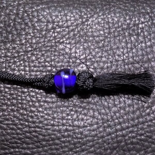 黒色の正絹組紐・房にガラス作家☆akiさんのブルーベースの蜻蛉玉緒締め使用。