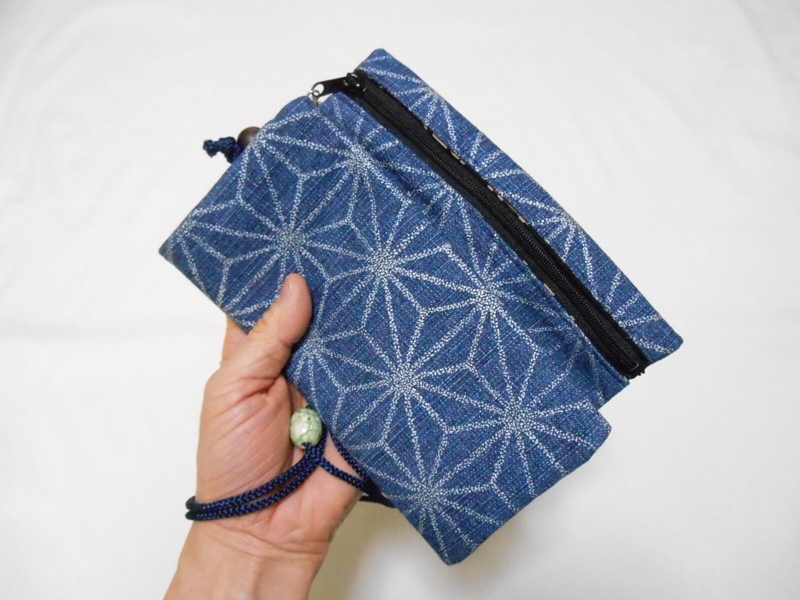 その技術を生かし、現代の日常で長く使っていただけるように素材はデニムを選び、銀泥で鎌輪奴(かまわぬ)デザインを金彩加工しました道中財布です。