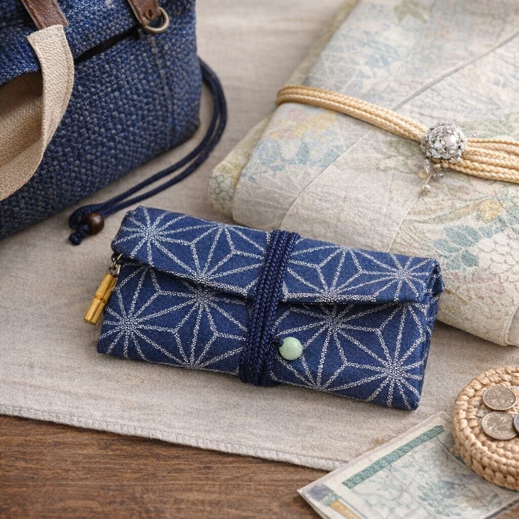 オーダー 京都 道中財布 デニム紺地製 「麻の葉 銀」 定番
