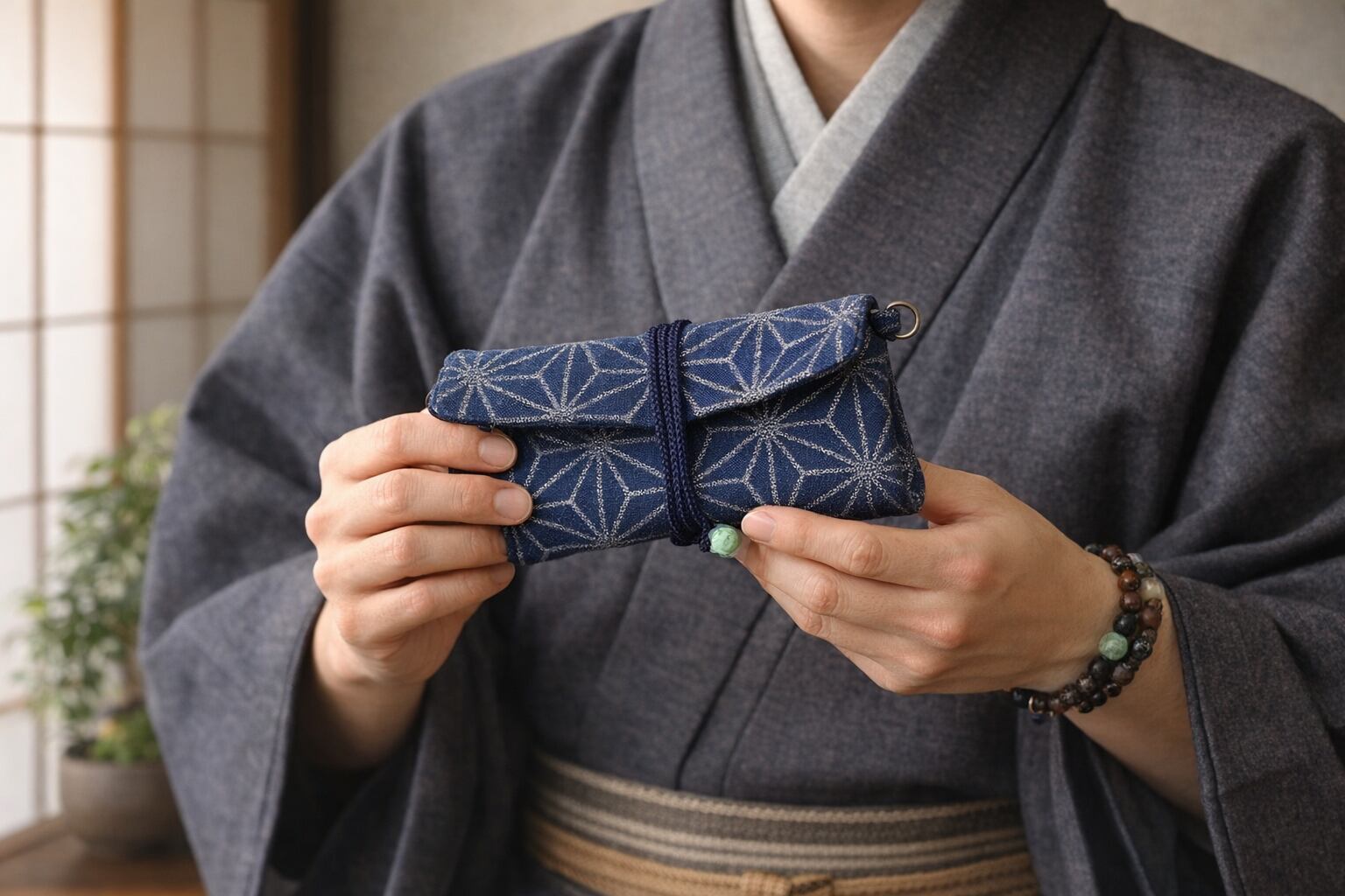 紐で巻いたり、解いたりしないといけませんが、その所作が和の嗜みを感じさせます。