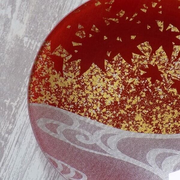 その技術を生かしガラス加工業者とコラボして制作しました飾り皿兼実用皿になります。