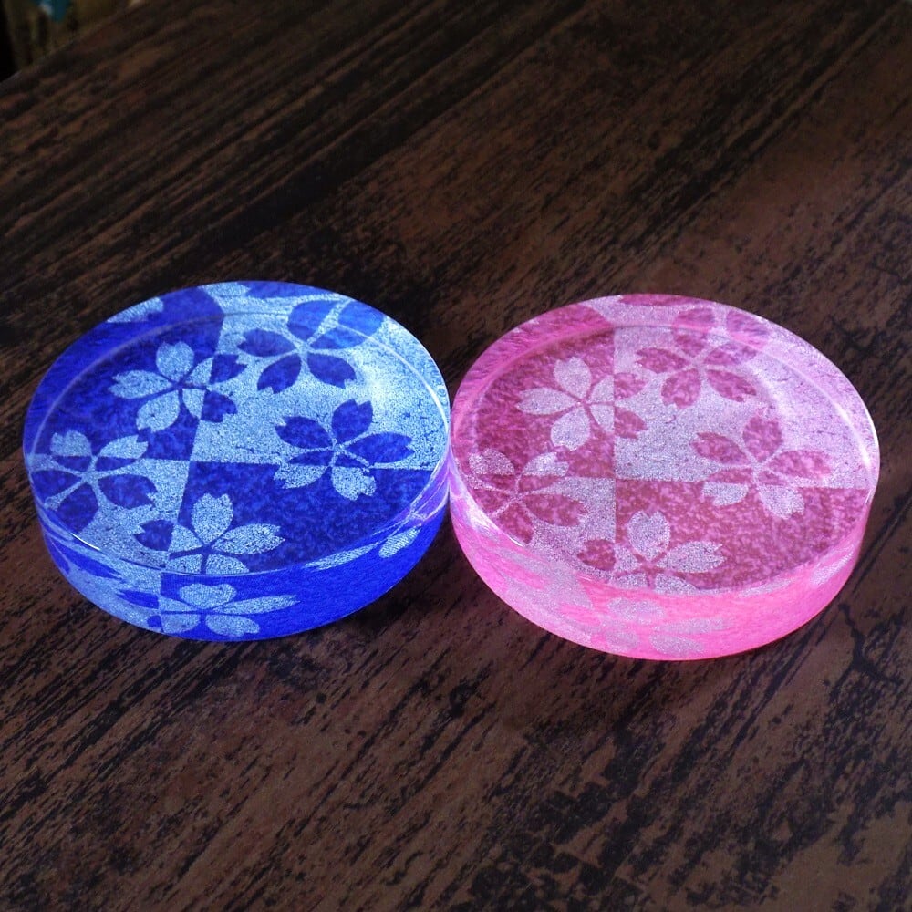 京都 ガラス製ペーパーウェイト 「桜 ブルー」