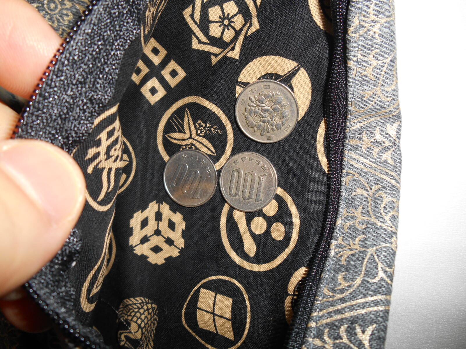 道中財布 デニムグレー製 菱唐草