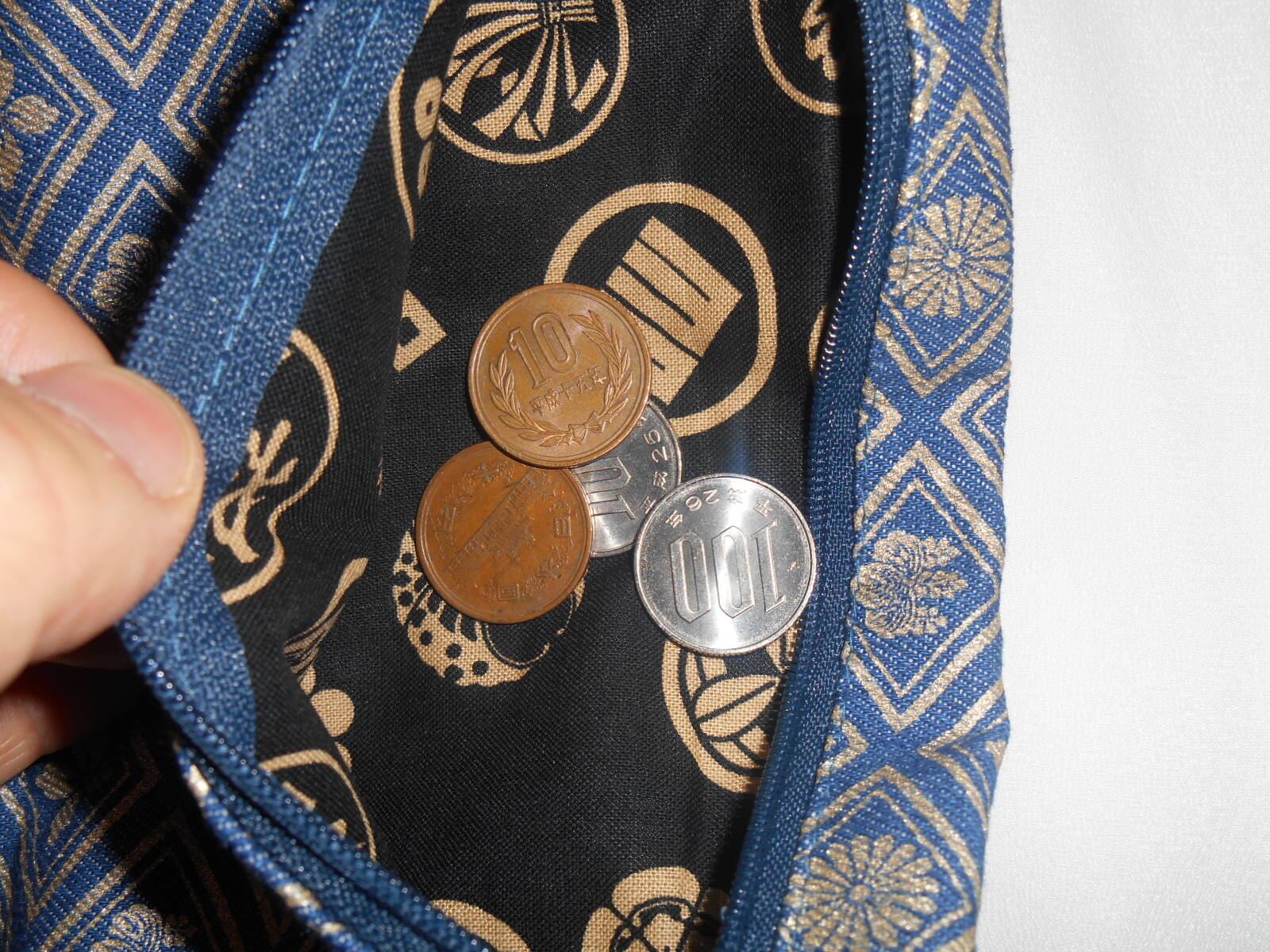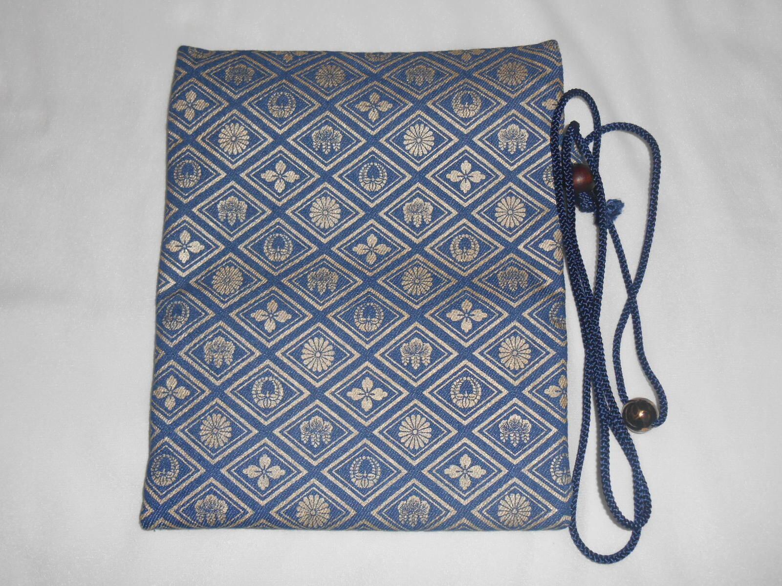 デニムやや青目の紺生地に金と銀の間の色で家紋菱柄を金彩加工しました道中財布です。 道中財布というのは、江戸時代から、旅人が旅に出る 時に必ず、お金や重要書類などを肌身離さず懐に入れて持ち歩いたといわれましています三つ折りの財布になります。 本品裏地は家紋柄になります。 緒締めの部分は金系の陶器製の緒締め。 ファスナーのつまみは竹製。 札入れとファスナーの小銭入れになります。 サイズは折りたたんだ状態で縦約9.8cm、横18.3cm。伸ばした状態で縦約23cm。 紐で巻いたり、解いたりしないといけませんが、その所作が着物、浴衣、作務衣を着用時に良く合います。 和装小物になりますが、普段使いでも十分活用できます。 また中には趣味の道具入れにも活用される方もおられます。 ご覧になる環境により、実際の商品と色味具合が異なって見える場合があります。あらかじめご了承ください。